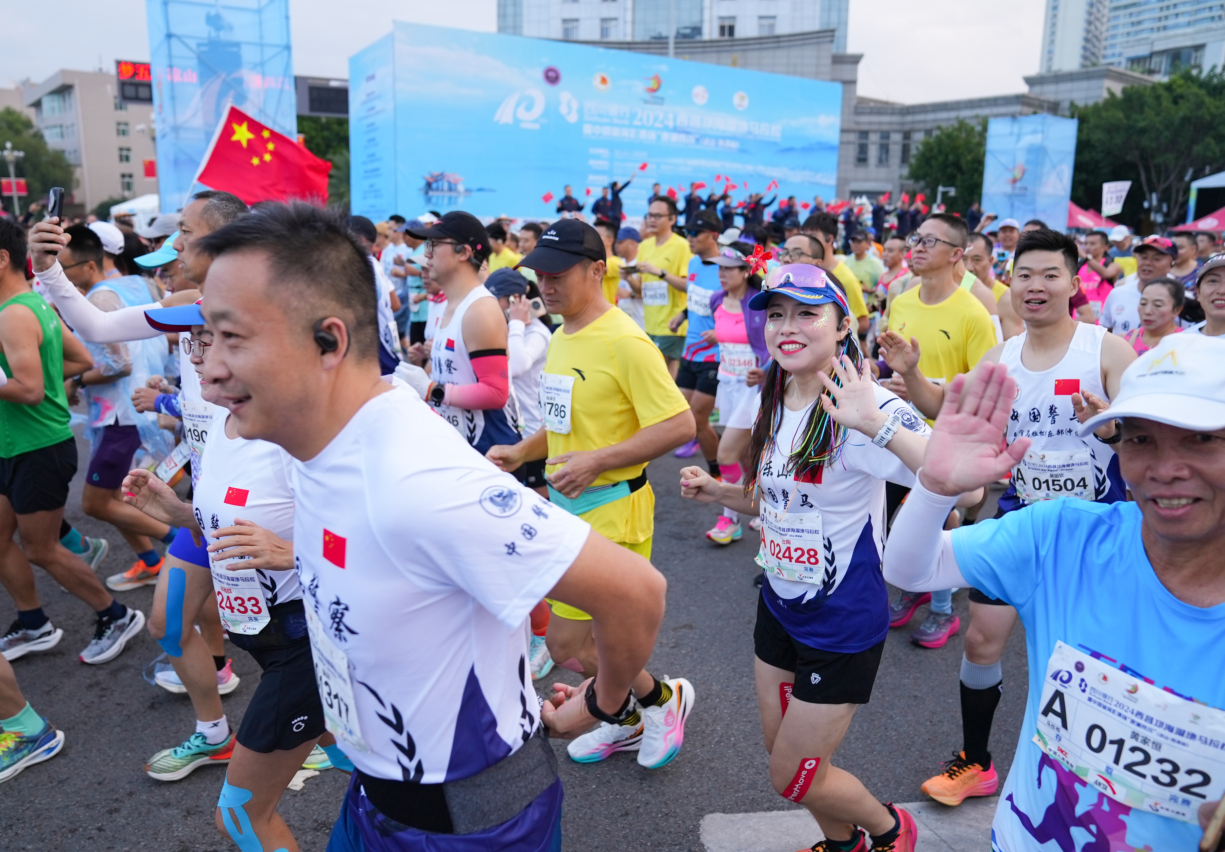 11月9日早上8点,2024西昌邛海湿地马拉松鸣枪开跑,2.5万东谈主从西昌火炬广场启航,向着“最好意思马拉松赛谈”驰驱。